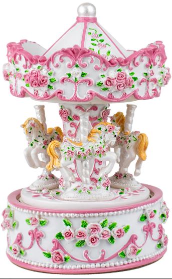 Carousel Sweet Rose Canopy Musical Horses
