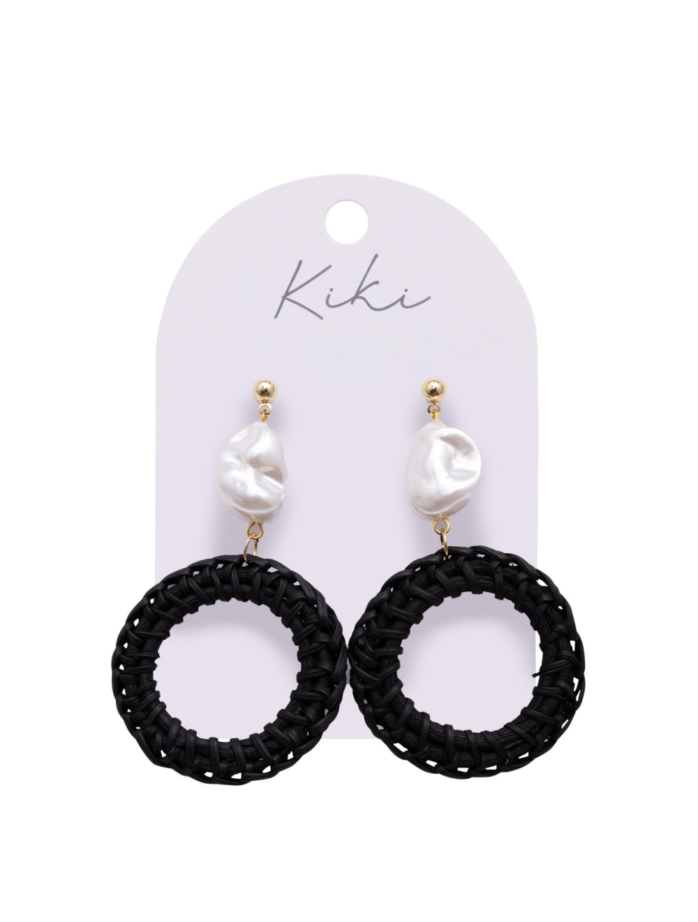 KiKi Pearl Black Rounds Earrings Product Details: Packaging: Hang-sell card Size: 5.5 x 3.5 x 0.5cm Details: Hand-crafted, lightweight statement earrings with stainless steel plated posts and backings